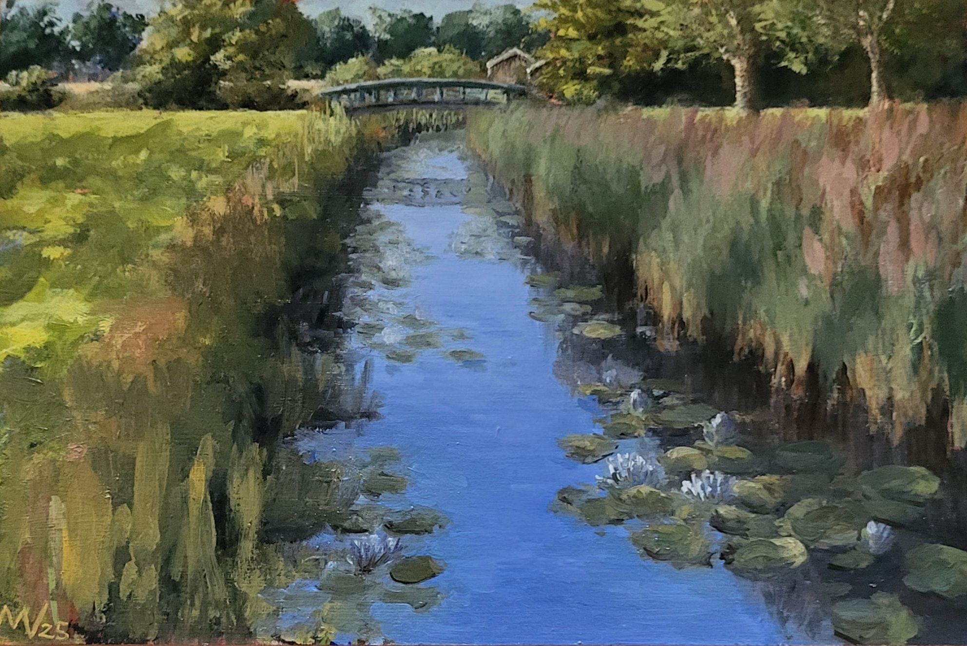 “sloot Meerstukken in juli”, olieverf op paneel, 30 x 15, 2024